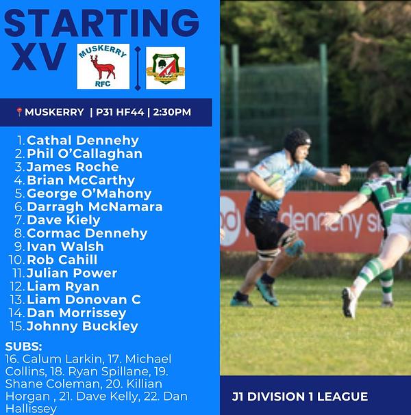 Fixture Junior 1 league Muskerry RFC v Clonakilty at home at 2.30.